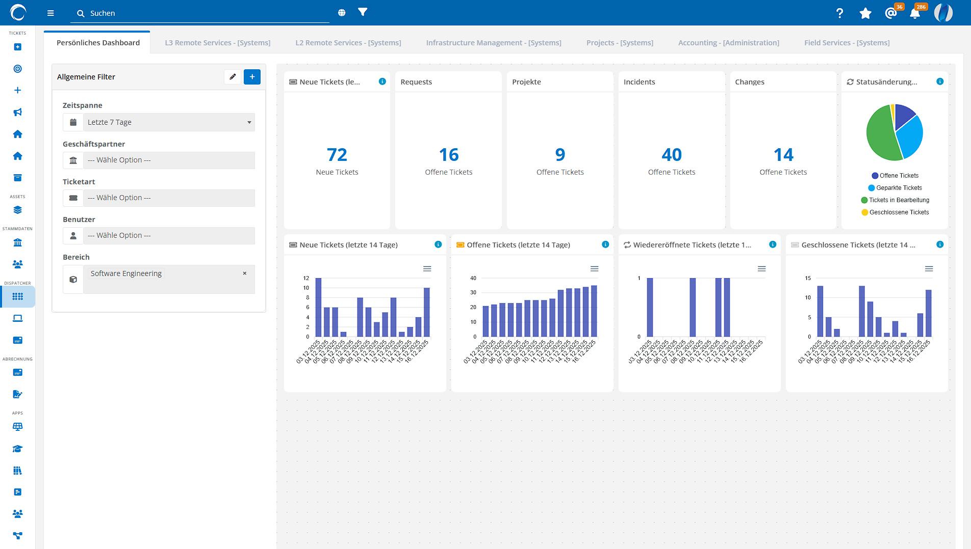 • Analyse von Ticketvolumen und Bearbeitungszeiten